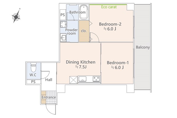 間取り 2DK (DK7.5/洋室6/洋室6)