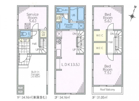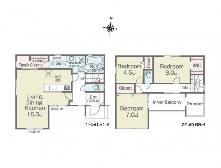 土地面積 | 153.88m² (46.55坪) | 建物面積 | 95.57u |