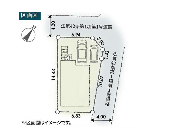 | 接道状況 | 接道: 北西 公道 道路幅: 4.2m 接道: 北東 公道 道路幅: 4m |