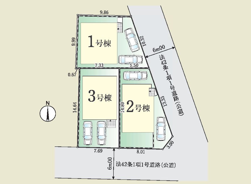 | 接道状況 | 接道: 北東 公道 道路幅: 6m 接道: 南 公道 道路幅: 6m |