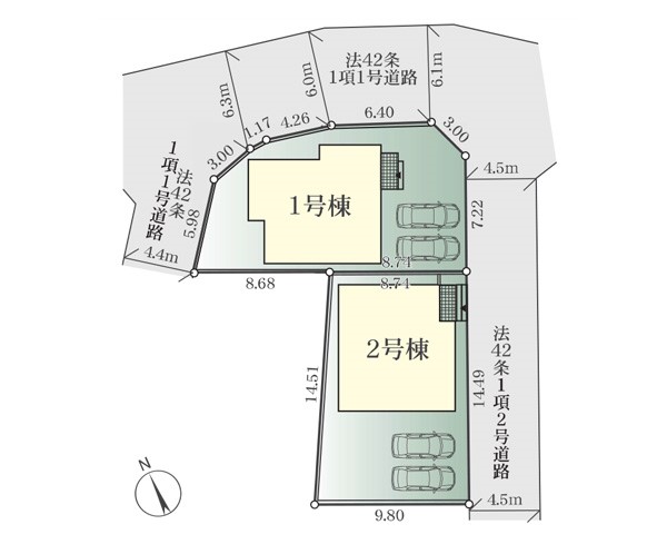 接道状況 | 接道: 北 公道 道路幅: 6.1m 接道: 西 公道 道路幅: 4.4m 接道: 東 公道 道路幅: 4.5m |