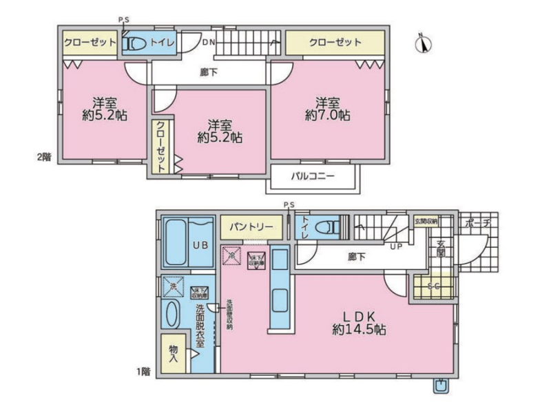 築年月 | 2021年9月築 | 間取り | 3LDK (LDK14.5/洋室7/洋室5.2) | ||