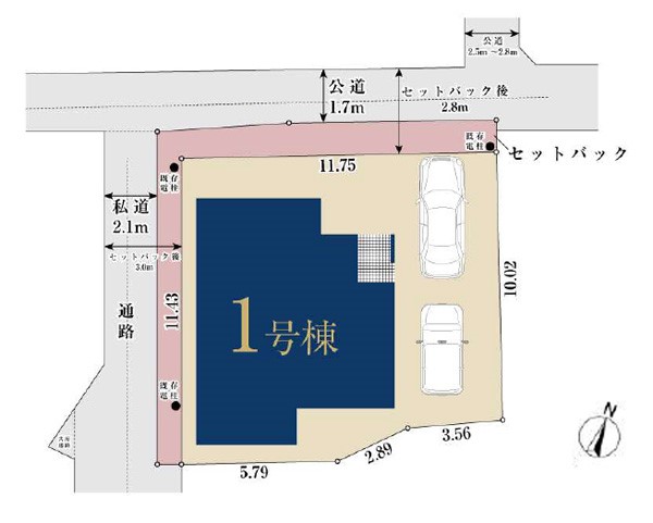 接道状況 | 接道: 北西 公道 道路幅: 2.8m 接道: 南西 私道 道路幅: 3m |