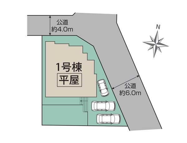 | 接道状況 | 接道: 東 公道 道路幅: 6m 接道: 北 公道 道路幅: 4m |