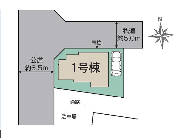 | 接道状況 | 接道: 西 公道 道路幅: 6.5m 接道: 北 私道 道路幅: 5m |
