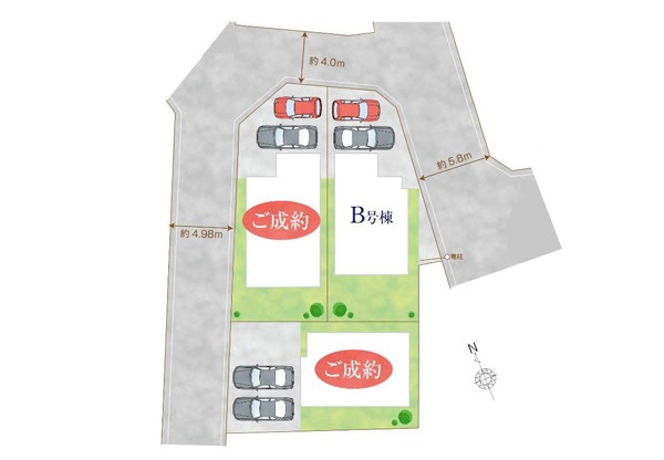 | 接道状況 | 接道: 東 公道 道路幅: 5.8m 接道: 北 公道 道路幅: 4m |