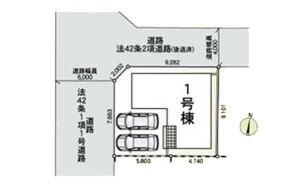 | 接道状況 | 接道: 西 公道 道路幅: 6m 接道: 北 公道 道路幅: 4m |