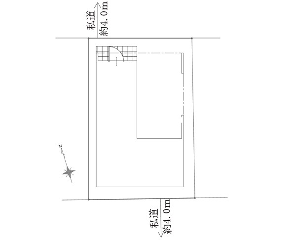 | 接道状況 | 接道: 北東 私道 道路幅: 4m 接道: 南西 私道 道路幅: 4m |