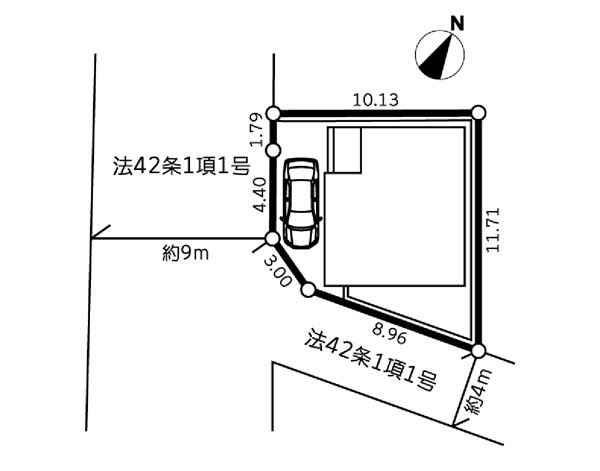 | 接道状況 | 接道: 南西 公道 道路幅: 9m 接道: 東南 公道 道路幅: 4m |